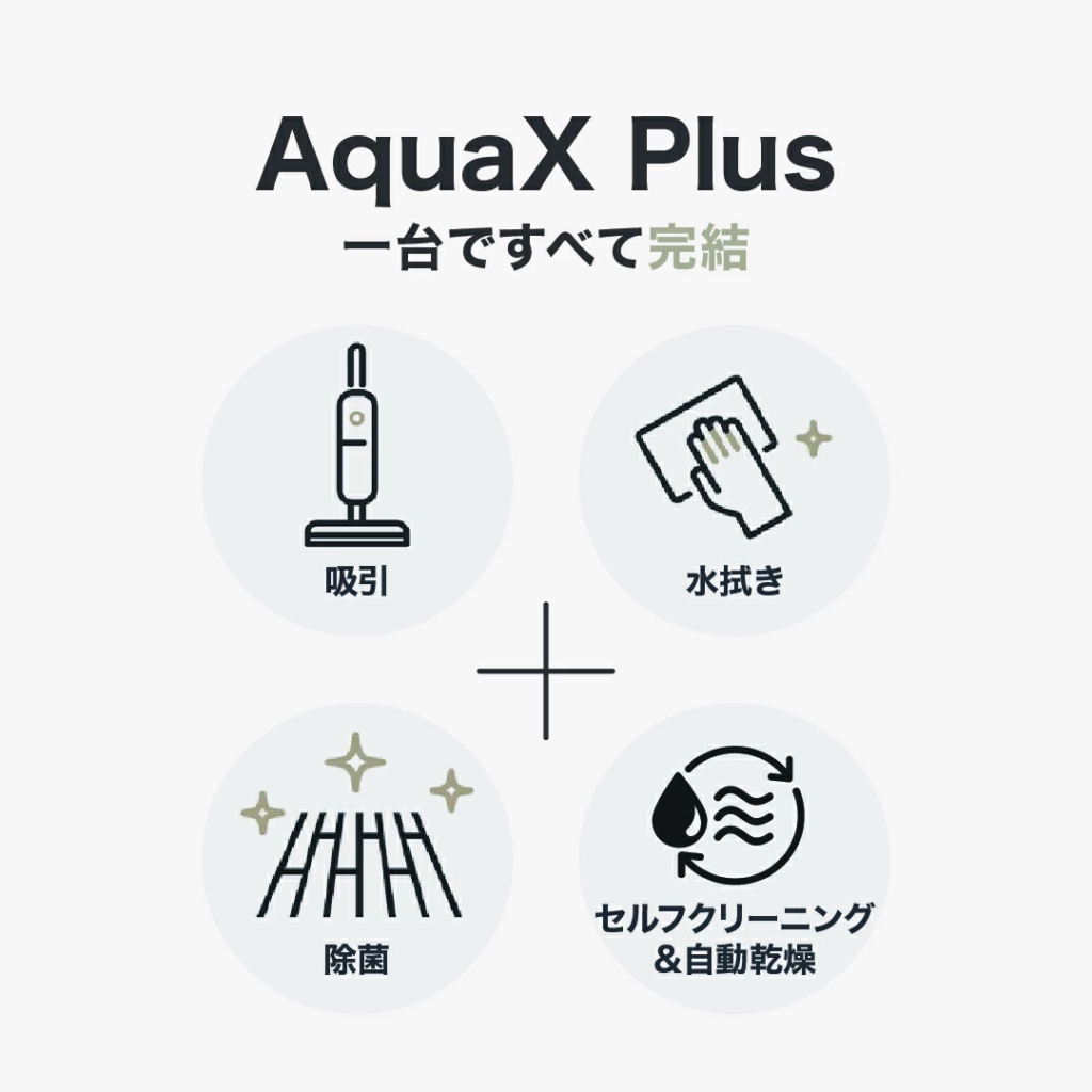 Mindoo AquaX Plusは、「吸引」と「水拭き」を同時に行うことができるコードレス水拭き掃除機です。
