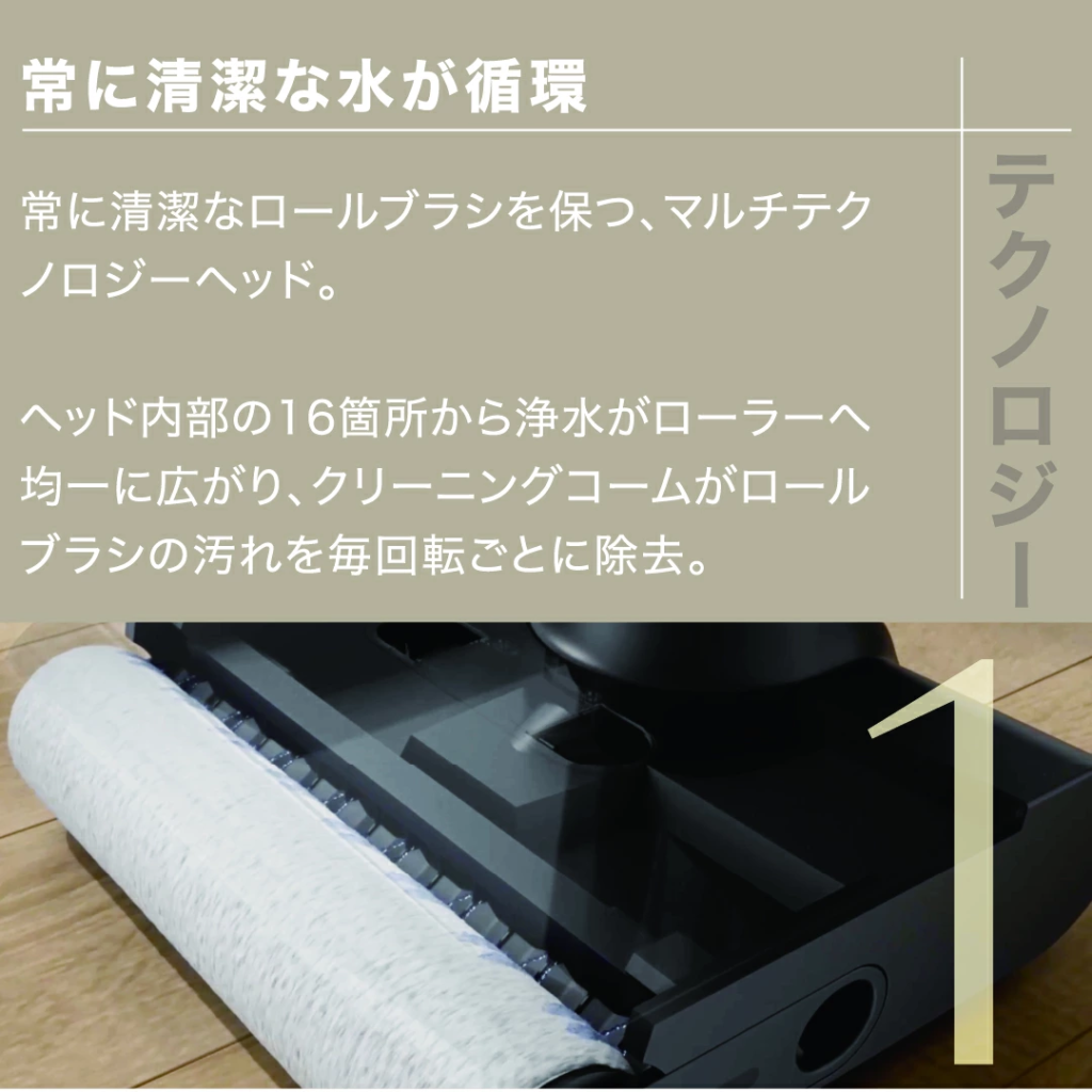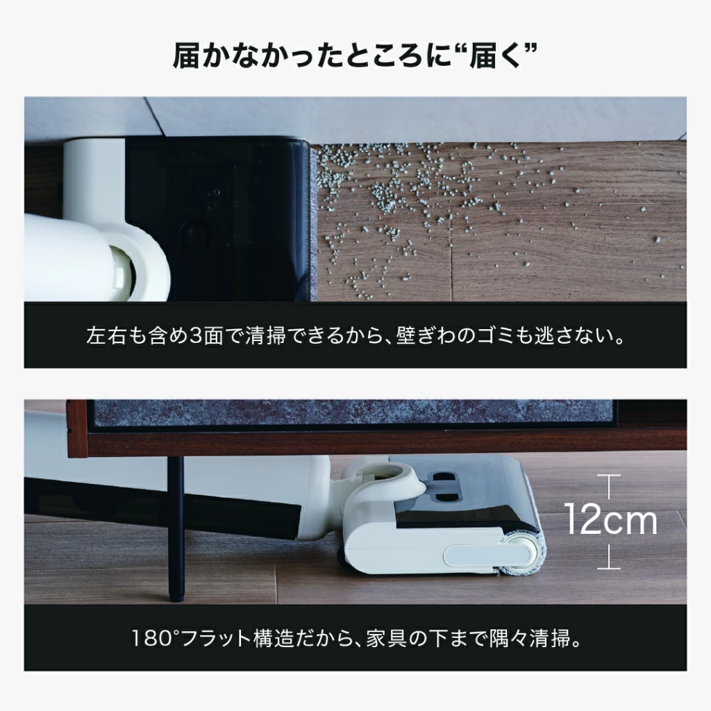 従来の掃除機では吸い込めなかった「液体」や「湿った食べこぼし」を強力に吸引しながら、同時に高速回転するローラーで床を水拭きしてくれる画期的な家電です。