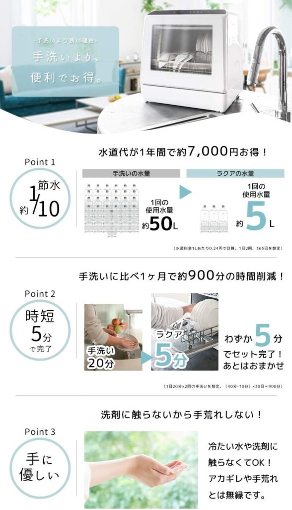 そんなあなたの毎日を劇的に変える救世主として、工事不要で手軽に置けるサンコーの食洗機「ラクア」が、今、大きな注目を集めています。